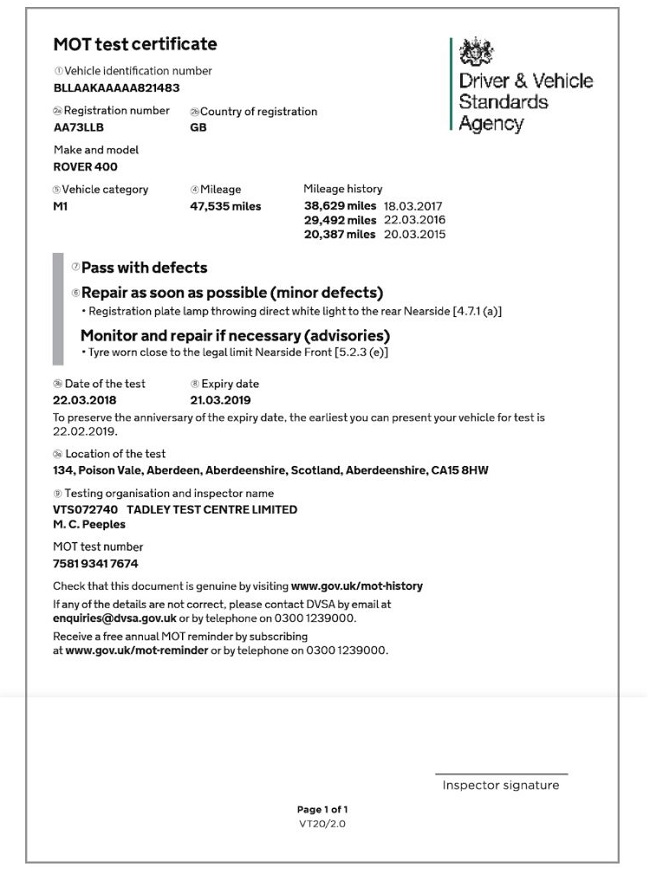 Cars MUST first have an MOT test when they’re 3 years old (4 in Northern Ireland). MOT certificates are valid for one year.
