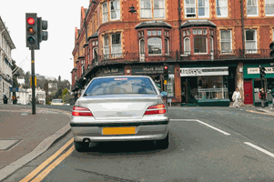 You intend to turn left at the traffic lights. What should you do just before turning?
