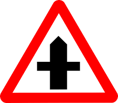 If you are driving on the main road and a crossroad is approaching it is likely that you will see a sign like this: